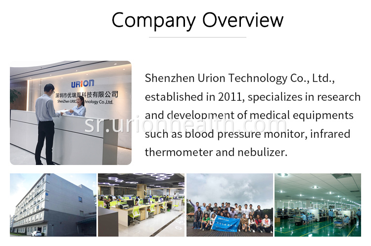 О1: Да, ми смо професионални произвођач кућних медицинских уређаја и национално високотехнолошко предузеће . Наша компанија је основана 2011. године и специјализована је за дигитални монитор крвног притиска, инфрацрвени термометар, распршивач и сродни Блуетоотх, Ви-Фи паметне носиве кућне медицинске уређаје више од 8 година. Наша компанија се налази у граду СхенЗхен, Гуангдонг. Увек сте добродошли да нас посетите.